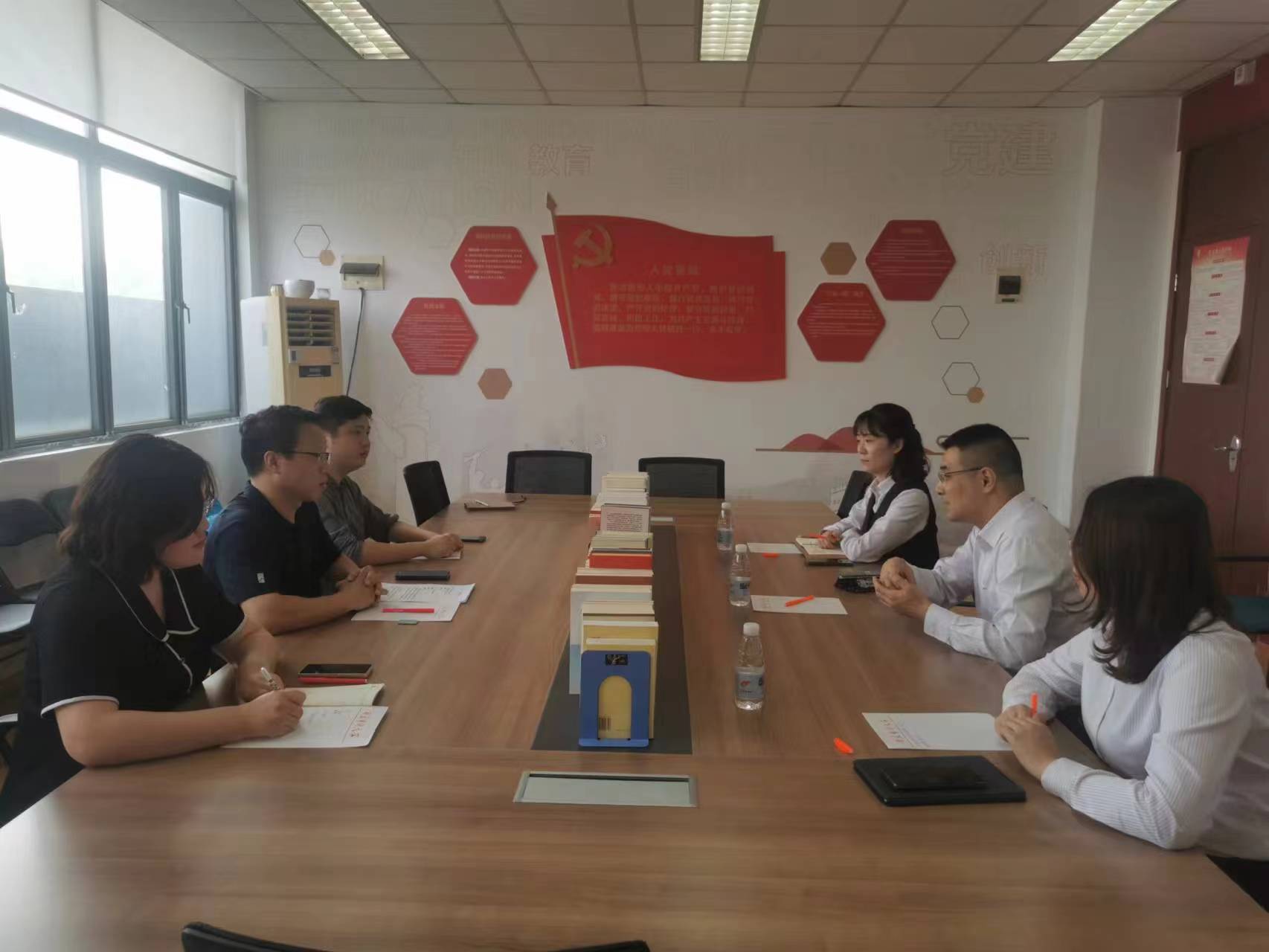 10月19日上午,紫金农商银行栖霞支行行长、党委书记谭磊一行3人,来我校洽谈支部共建事宜。williamhill庄怀军、驰书记,以及教师代表吴学翠、关涵参加洽谈。