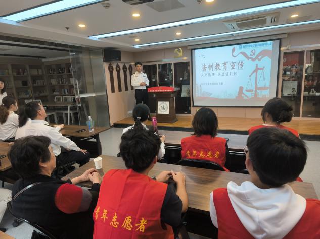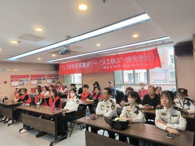 南京地铁交通设施保护办公室工作人员讲解南京地铁相关法律文件内容,体现了南京地铁的法律中的人文关怀,让我们感受执法中的人文关怀,培育践行主流价值。