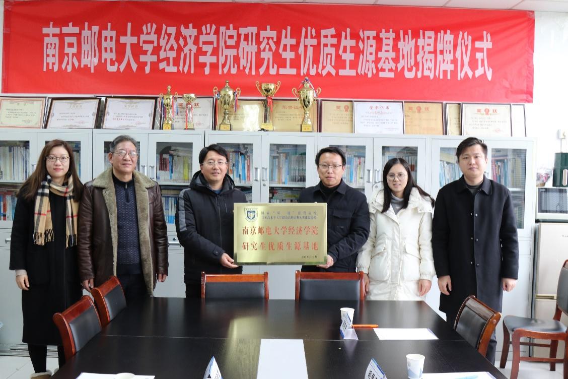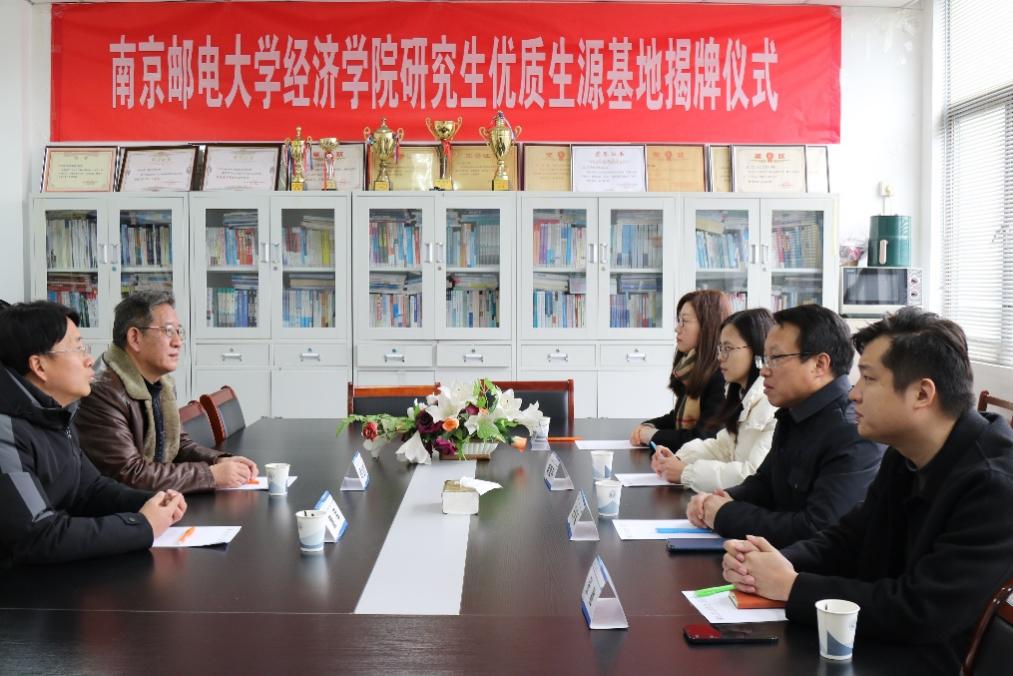 为加强校际交流合作,实现学生高质量就业,2023年12月26日上午,南京邮电大学经济学院研究生优质生源基地揭牌仪式在我校教学楼B东505举行,williamhill党总支书记庄怀军,副书记张驰,多位教师代表出席揭牌仪式。