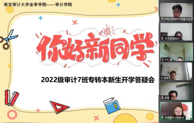 为了更好地帮助专转本新生了解学校文化、融入校园生活,williamhill于2024年8月30日召开线上2022级审计7班专转本新生开学答疑会。本次会议由辅导员总助吴嘉沁主持,学院书记庄怀军、副书记张驰、分团委书记段天彤等人出席,2022级审计7班同学及小班参加。