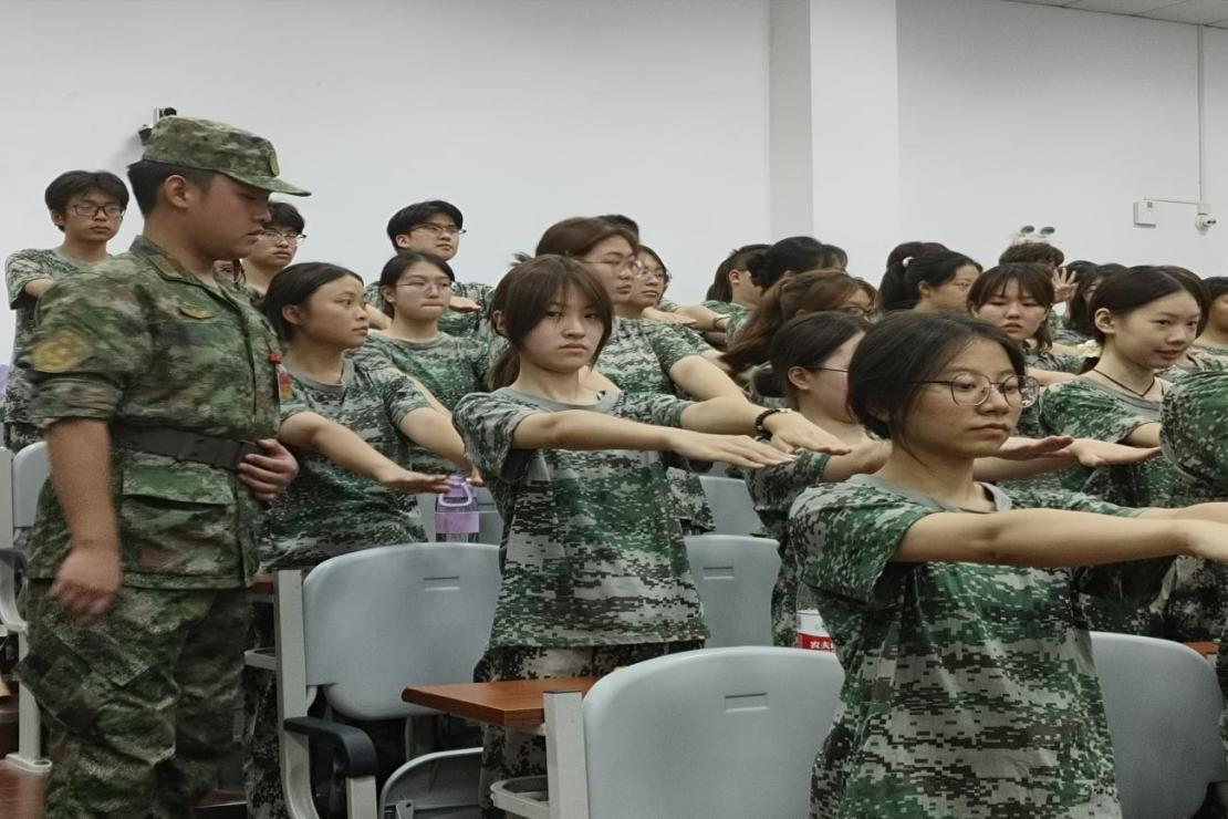 三位军训教官开始对同学们进行军训动员,他们以嘹亮的口号让同学们肃然起敬,席间教官逐个检查了同学们的仪容仪表,并对大家的表现和仪表着装提出了要求和规范。并提出对同学们军训时的要求和注意事项,表达了对新生军训的希冀与关心,激励同学们在保证安全的基础上能以更优异的表现完成军训。