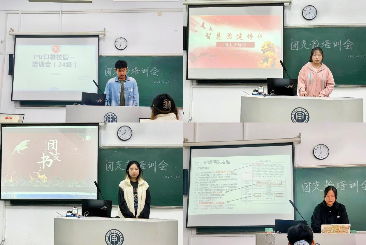 他们分别就PU平台的操作流程、活动发布与管理、成员管理等功能进行了详细讲解,并现场演示了智慧团建系统的基本操作,包括组织关系转接、团员信息管理、活动记录等模块。同时,针对团支书的工作特点,四位干部还分享了团支书的工作职责、工作方法以及如何在日常工作中发挥团支书的引领作用。