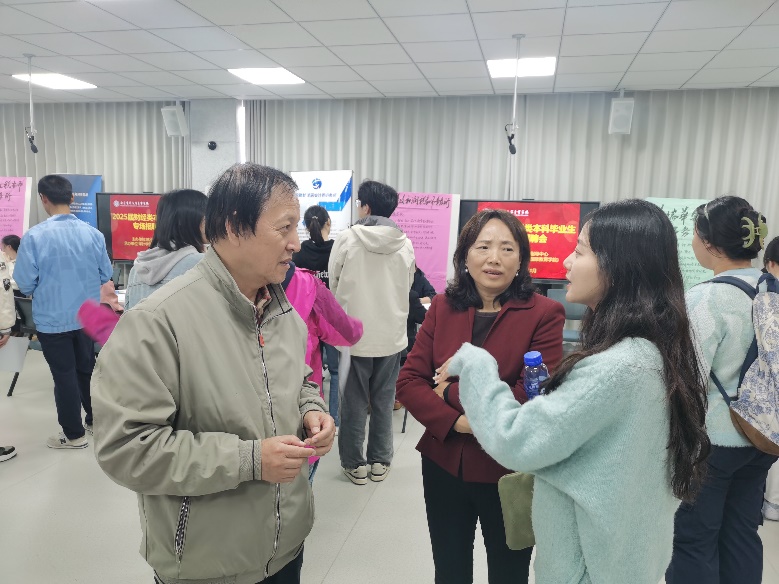 学校副校长、博士生导师尹平,学院副院长和秀星,学院党总支书记庄怀军,副书记张驰以及辅导员老师也十分关心同学们的职业发展,亲临现场,与用人单位进行细致沟通,了解其招聘岗位需求。同时还与毕业生亲切交谈,鼓励同学们树立正确就业观念,做好职业规划,合理定位、积极就业。
