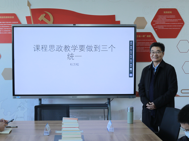 会上,杜教授主张“教学+思政元素”,通过课程教学实现价值引领和人格养成的双重目标。实现这一目标要做到三个方面的统一:1.做到认知和行动的统一,即让学生在理解思政理念的基础上,将其转化为实际行动,做到知行合一;2.实现原则性和灵活性的统一,既要坚持思政教育的原则,又要根据学生的实际情况和兴趣点进行灵活调整,使思政教育更加贴近学生、贴近生活;3.推进主导和主体的统一,充分发挥教师在思政教育中的主导作用,同时尊重学生的主体地位,激发他们的学习积极性和创造力。从而引导学生树立正确的世界观、人生观和价值观,进一步培养他们的社会责任感和国家使命感。