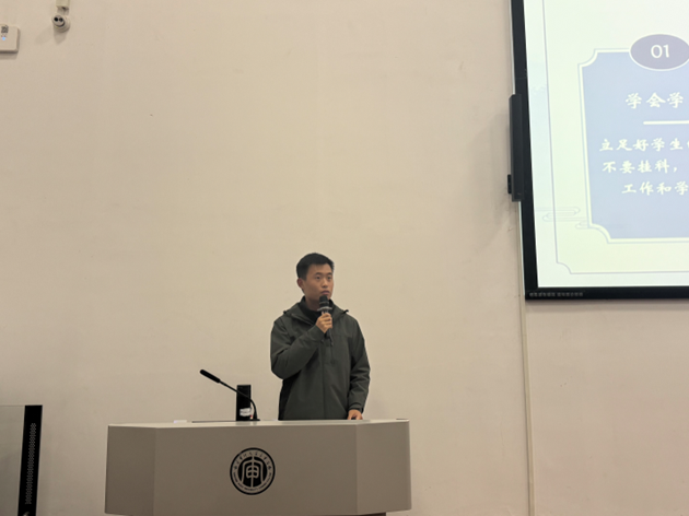 在分享的最后环节,他结合自己的学生干部经历,谈到了几点感悟:首先呼吁同学们要积极加入各类学生组织和学院特色班成员,以此为踏板,在不同的平台上展现自我的能力;同时,要积极参加各类专业比赛等,以此提升的不仅仅是自我实践能力;第三,还要会使用零碎的时间,用极少的时间来做更多的事情,以达到事半功倍的效果。