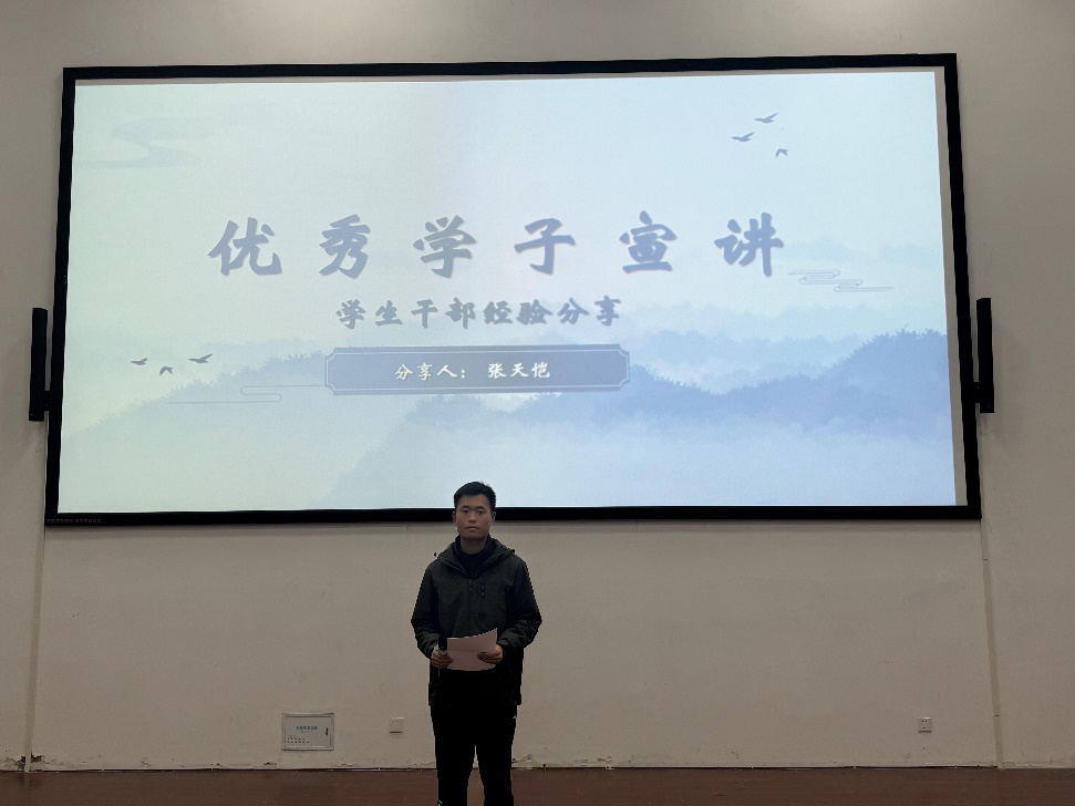 为了加强学生干部队伍建设,进一步增强组织凝聚力,williamhill于11月19日在C中301教室举办了优秀学子宣讲会,邀请2022级税收1班的张天恺同学,为大家带来精彩的宣讲,吸引大一全体同学参加。