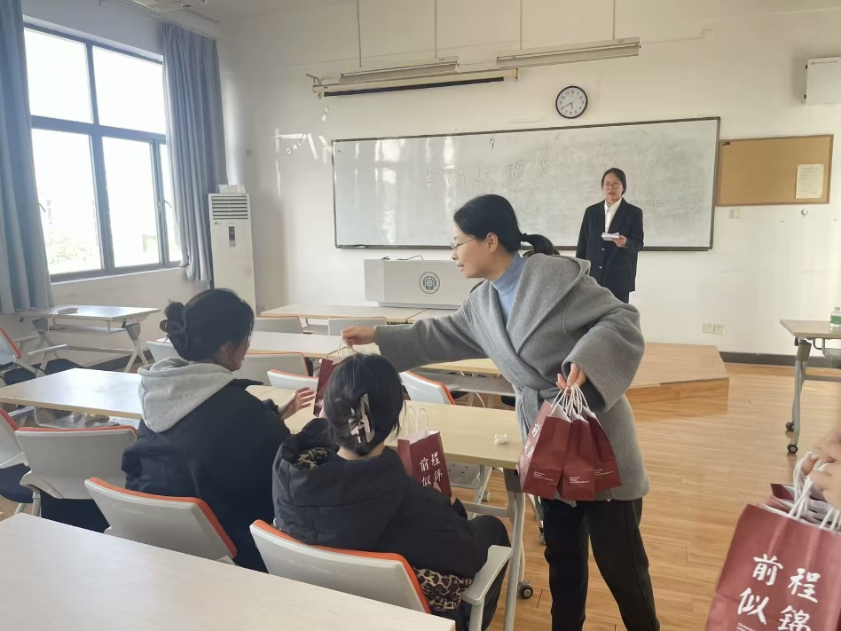 活动进行过程中,魏忠英老师亲临现场,为考研学子们送上福袋和真挚的祝福:“考研之路虽长且艰,但你们的努力与坚持终将开花结果。希望这些福袋能为你们带来好运,祝愿你们都能取得优异的成绩!”魏老师的鼓励让在场的学子们深受鼓舞,信心倍增。