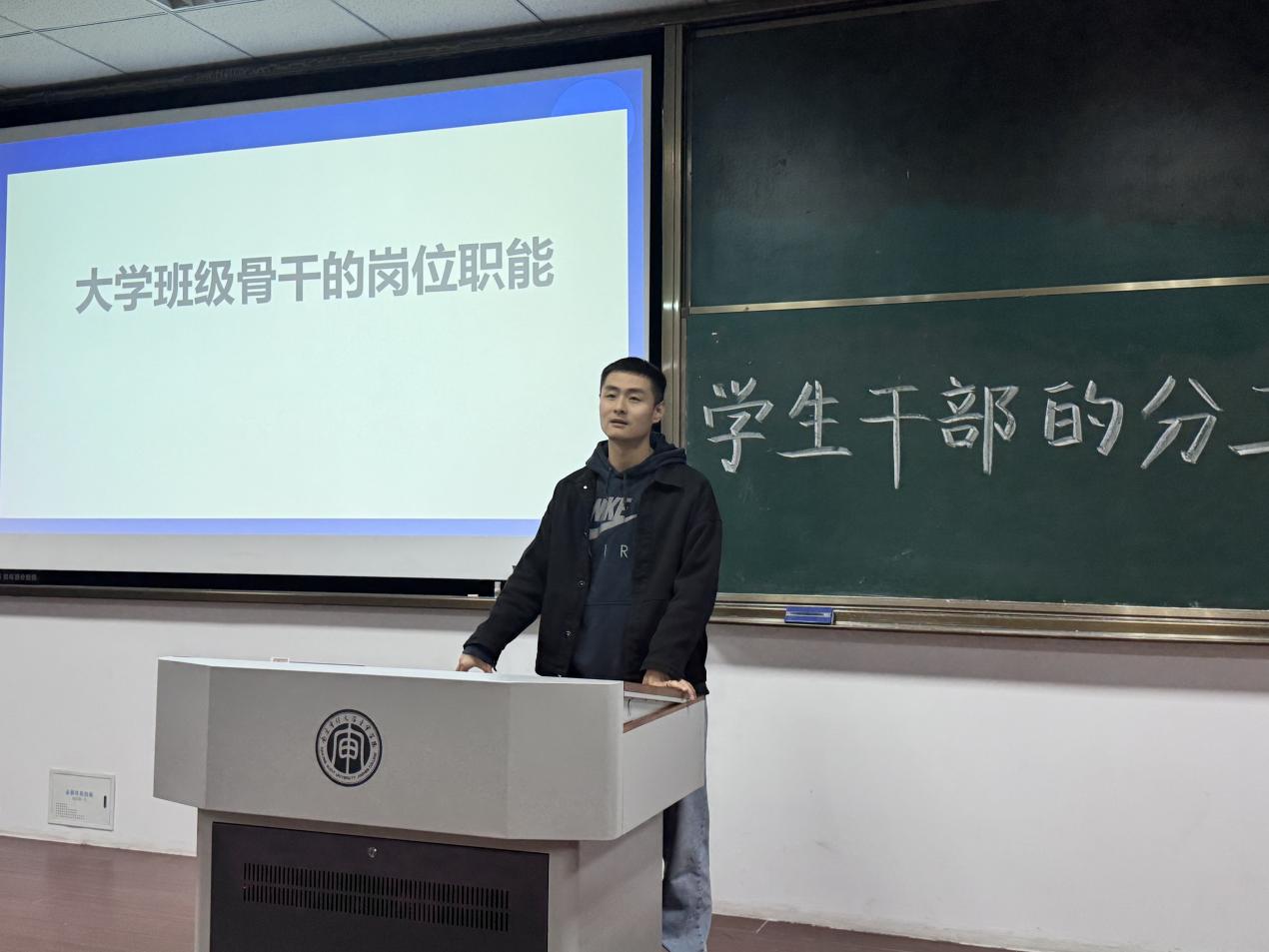 为帮助学生干部清晰了解不同岗位的具体分工和职责范围,明确自身角色定位,2024年12月4日下午,williamhill(国际教育学院)第10期学生干部培训班第八讲在C南501教室成功举办。本次讲座主题为“学生干部的分工和职责”,主讲嘉宾为国际教育学院分团委书记马浩杰老师,吸引了众多24级班干部、分团委成员及学生干部前来参加,现场氛围热烈。