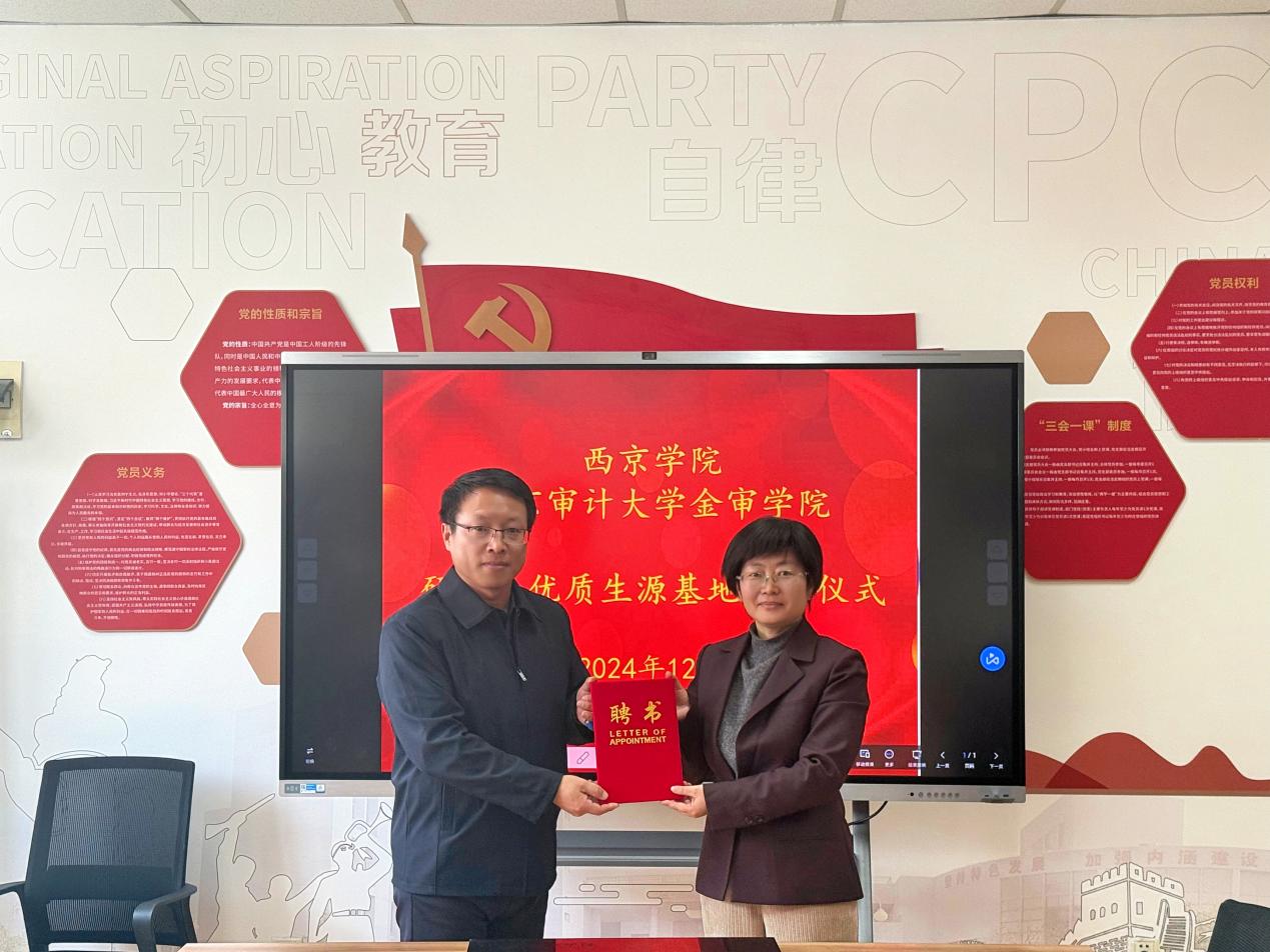 2024年12月26日上午,williamhill英国中文williamhill与西京学院在B东505会议室进行了西京学院研究生优质生源基地揭牌仪式。我院院党总支书记庄怀军、副院长和秀星、副书记张驰、综合办公室主任吴学翠出席本次仪式。
