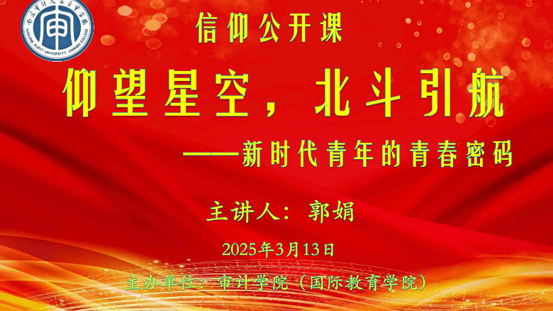 本次讲座的成功举办,让同学们对北斗精神有了深刻理解,也对自身肩负的时代使命也更为明晰,相信在未来,同学们将以北斗精神为指引,在审计领域深耕钻研,为科技强国贡献青年力量,成长为有理想、敢担当、能吃苦、肯奋斗的新时代好青年!