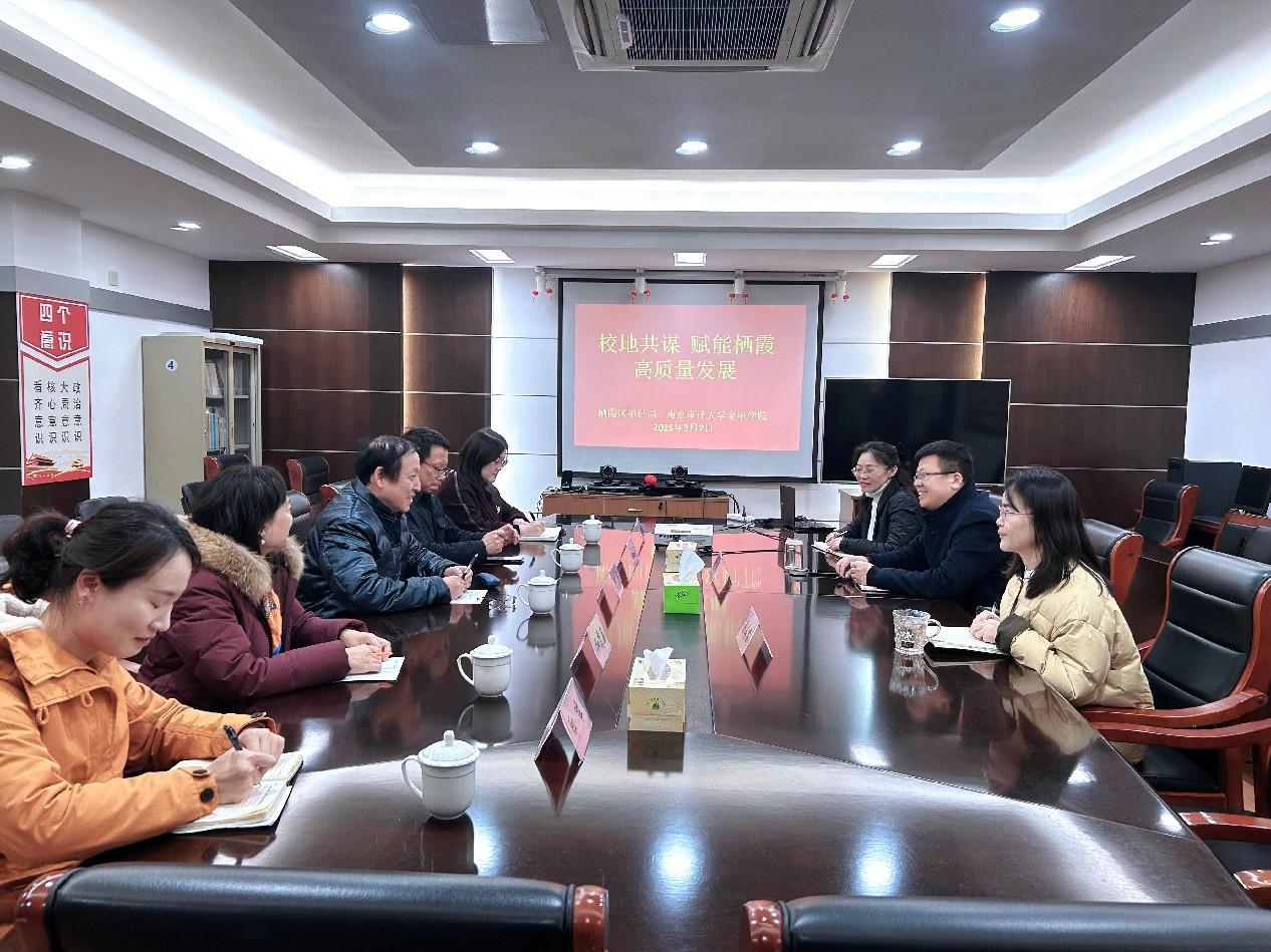 座谈会上,栖霞区审计局陶硕局长对我校一行表示热烈欢迎,详细介绍了该局的基本情况,本年度工作概要和部分审计项目。他表示双方所属地均为栖霞区,依托区域优势,开展深度合作,在人才培养、人员培训、实习基地建设、科研课题合作等方面凝聚合力,同向而行。同时指出当前审计工作立足经济监督,聚焦主责主业,对审计人员专业能力有了更高要求,审计工作对复合型、应用型人才需求迫切,期待通过校政合作,充分发挥高校智力资源与政府实践平台的优势互补,共同探索“理论+实务”双向的人才培养机制。