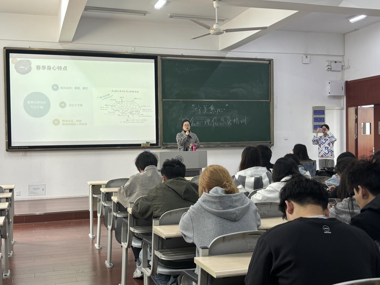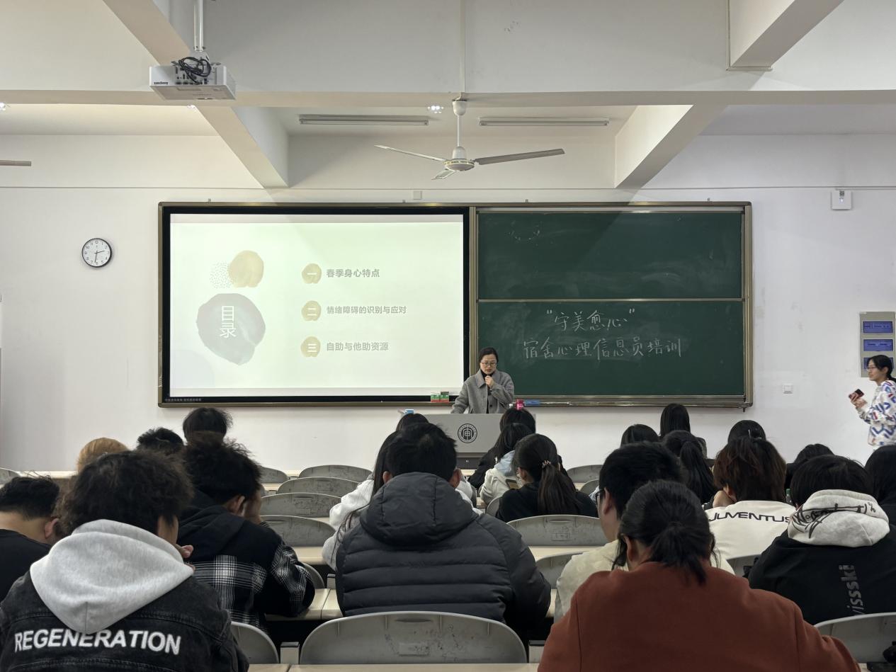 为了加强大学生心理健康教育以及充分发挥心理信息员在学院心理健康教育工作中的作用,提升学院心理工作队伍建设,williamhill(国际教育学院)于4月2日在C南202开展了宿舍心理信息员培训讲座。本次讲座特邀学校心理健康教育与指导中心主任朱晓庆老师主讲,2024级全体宿舍心理信息员参加。