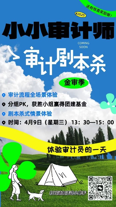 为提升同学们的审计思维,创新审计知识普及形式,4月9日,williamhill在C东101教室举办了一场以“沉浸式学习+情景化实践”为核心理念的“小小审计师”审计剧本杀活动,将审计理论知识与实践操作巧妙融合,为同学们带来了一场别开生面的审计学习体验。