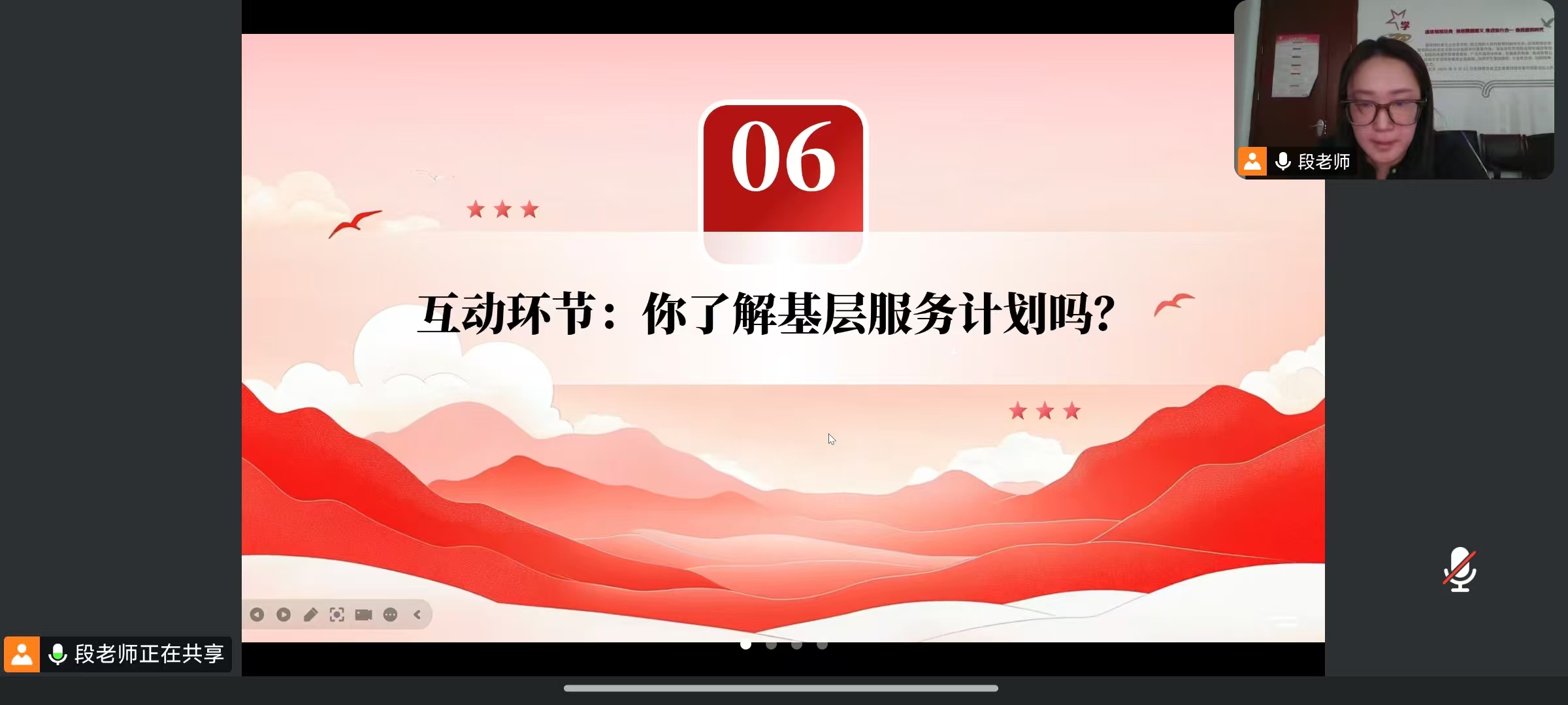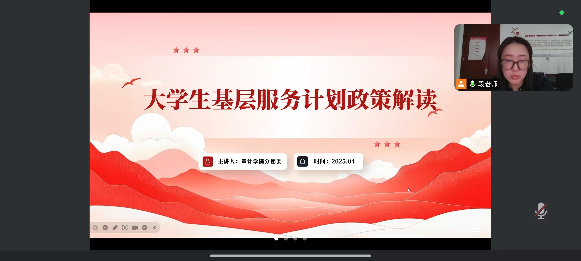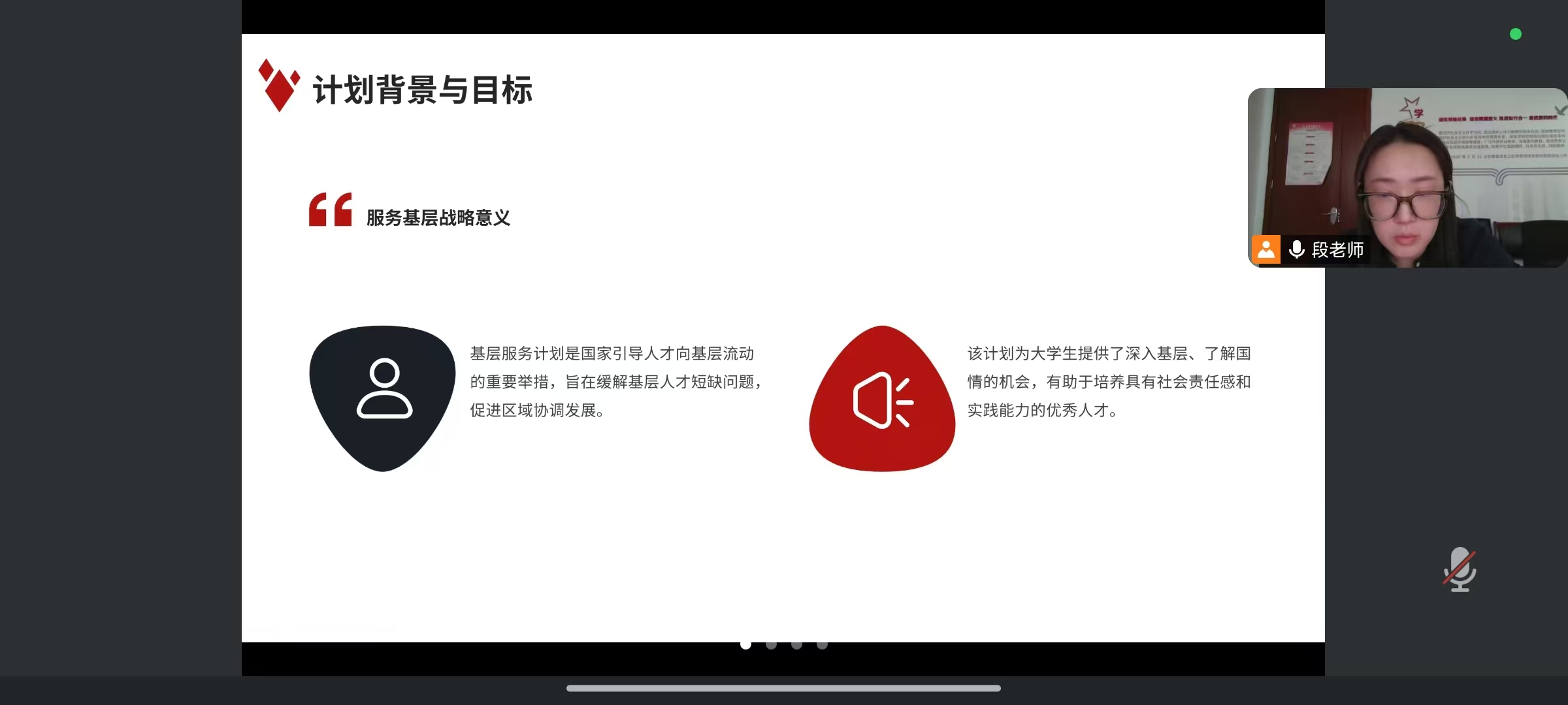 分团委书记段天彤老师结合政策背景与目标,说明基层服务是缓解人才短缺、促进区域协调的重要举措,并为大学生提供了深入基层实践、培养社会责任感的宝贵机会。