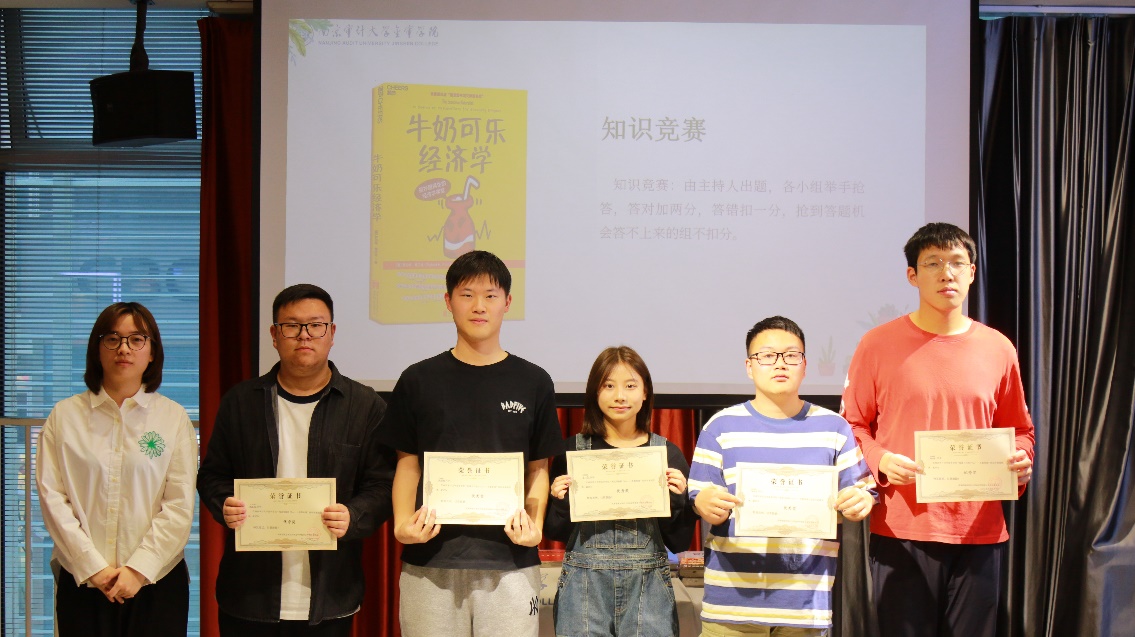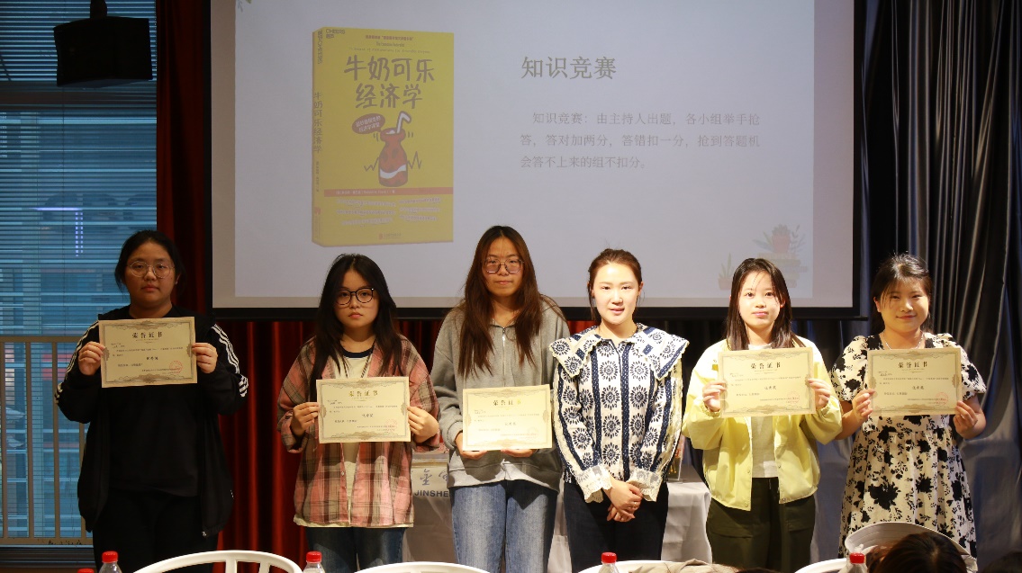 中场休息时,审计学院李抒艺同学的小提琴即兴演奏《沉思曲》将活动推向艺术高潮。琴声与书香交融间,知识竞答环节随即开启。经过三轮激烈角逐,“别管我们”战队凭借扎实的阅读积累率先冲线,摘得桂冠。赛事中多个精彩问答瞬间折射出参赛者的深度思考:“影院爆米花定价策略”的解析,参赛者不仅援引沉没成本理论,更延伸至场景消费的心理学机制;在解析“酒吧免费花生”案例时,有队伍创新引入博弈论视角,提出“需求弹性差异定价”的新见解;关于“产品包装形态选择”的探讨,选手们从供应链管理到消费者行为学展开跨学科分析。