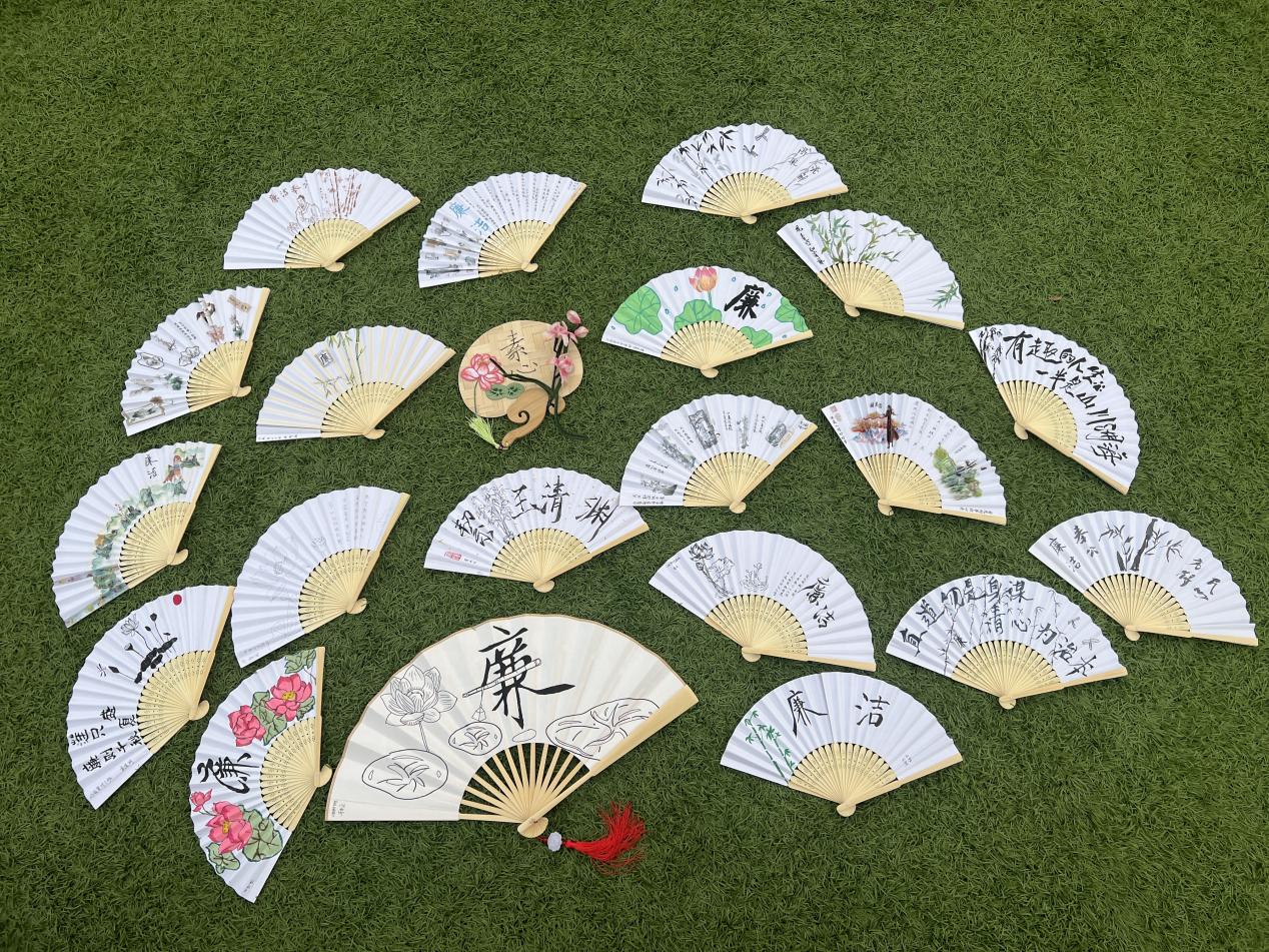 与此同时,在“廉洁艺术扇”创作环节中,学员们围绕“廉洁”主题,以国风为创作基调,通过手绘、书法、拼贴等多种形式,在扇面上挥洒创意。艺术扇子以国风为创作风格,学员们巧妙运用水墨丹青、诗词篆刻等传统艺术形式,将廉洁文化与中华美学相结合。一幅幅扇面或苍劲有力,或清新雅致,既有“出淤泥而不染”的莲韵,也有“清风两袖朝天去”的铮铮誓言,以匠心独运的方式诠释了廉洁文化的时代价值。