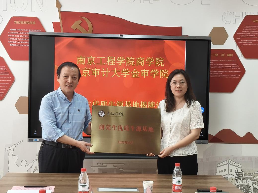 座谈会后,双方领导共同为“研究生优质生源基地”揭牌并合影留念。此次合作不仅为金审学子开辟了指向南京工程学院的优质升学通道,更标志着两校在协同育人、资源共享方面迈出坚实一步,为培养高层次应用型经管人才注入强劲动力。