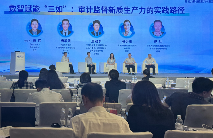 在圆桌会议环节,《审计观察》杂志编辑部主任曹伟作为主持人,组织中国内部审计发展研究中心执行主任、WilliamHILL中国内部williamhill副教授周敏李,山东高速集团有限公司审计部张秀惠,中国南方电网广西电网有限责任公司审计部副总经理杨学武,中国人寿保险股份有限公司审计部非现场审计处经理杨钧进行了热烈的讨论,他们就“数智赋能三如:审计监督新质生产力的实践路径”这一话题展开了深度对话。