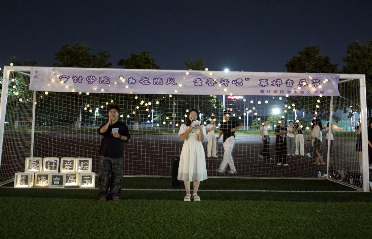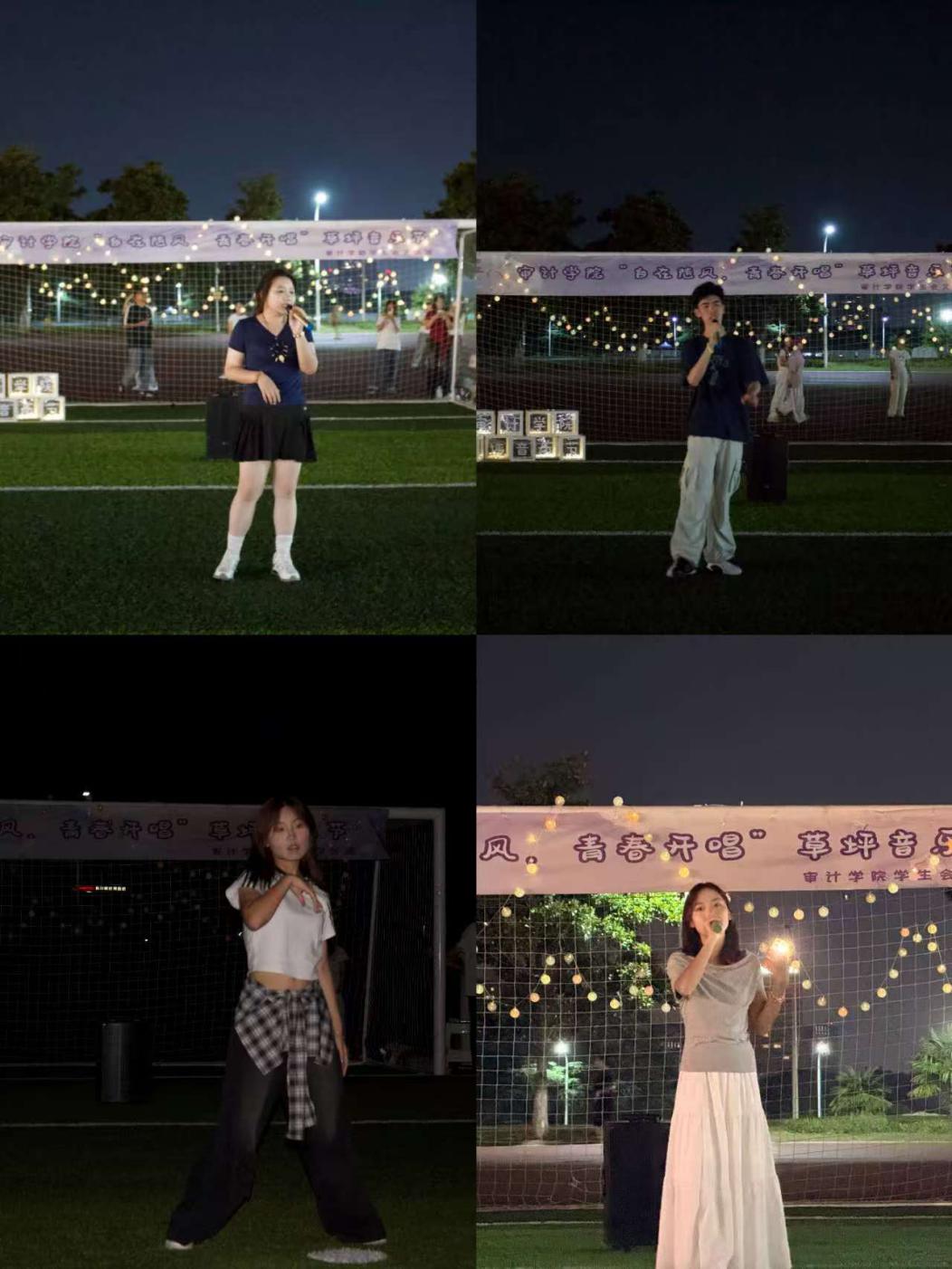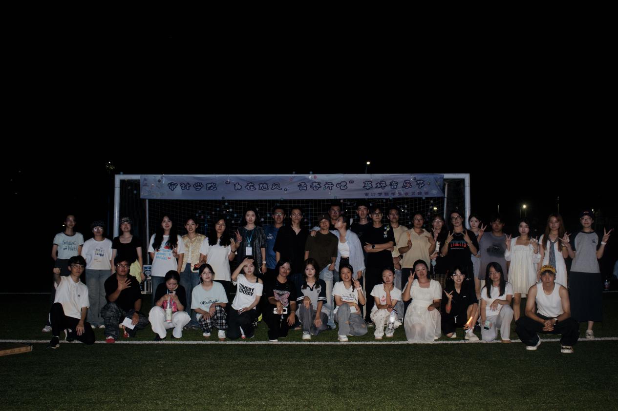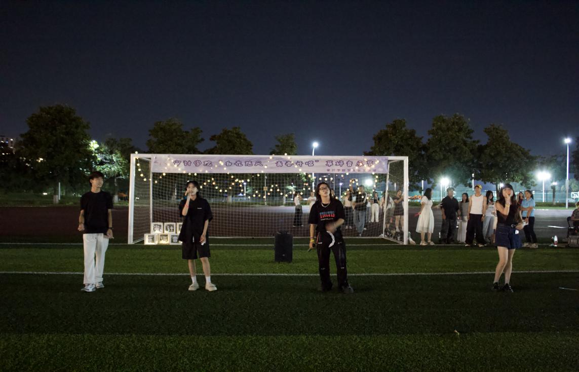 本次草坪音乐节在策划之初就备受期待。学院精心选择了大操场这片开阔又充满自然气息的场地,柔软的草地成了天然的观众席,落日余晖与轻柔晚风交织,营造出温馨惬意的氛围。活动开始前,现场便已聚集了众多热情的同学,大家或三五成群席地而坐,或翘首以盼等待演出开始,现场气氛热烈而欢快。