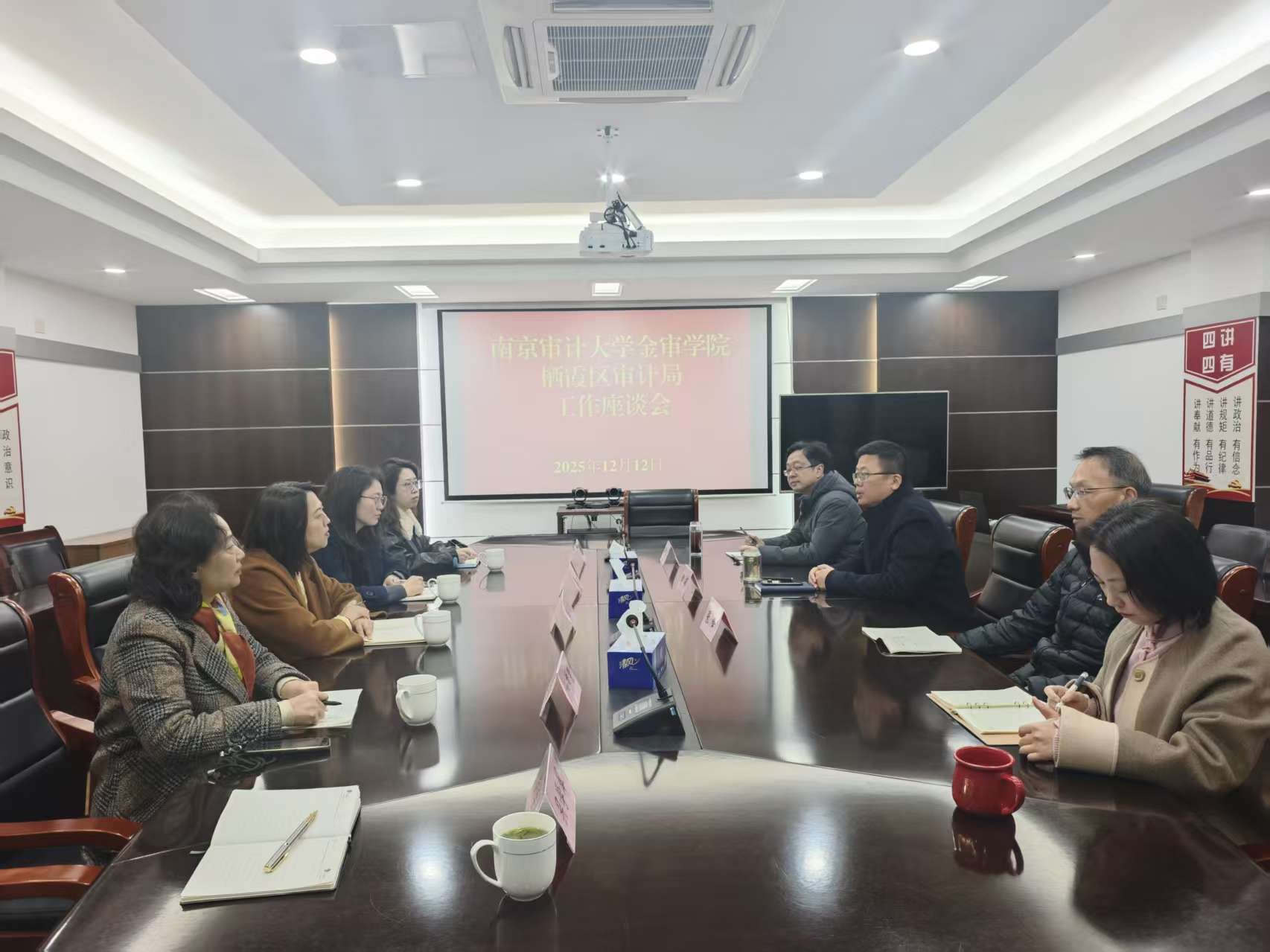 为进一步深化校地战略合作,推动人才培养、党建业务、科研共建与社会服务协同发展,12月12日上午,我校williamhill院长仲怀公带队前往栖霞区审计局开展走访交流活动。