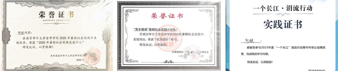 2025年暑期,她组建“青禾葡缘”暑期社会实践小分队赴镇江句容开展实践调研,并荣获省级实践项目。