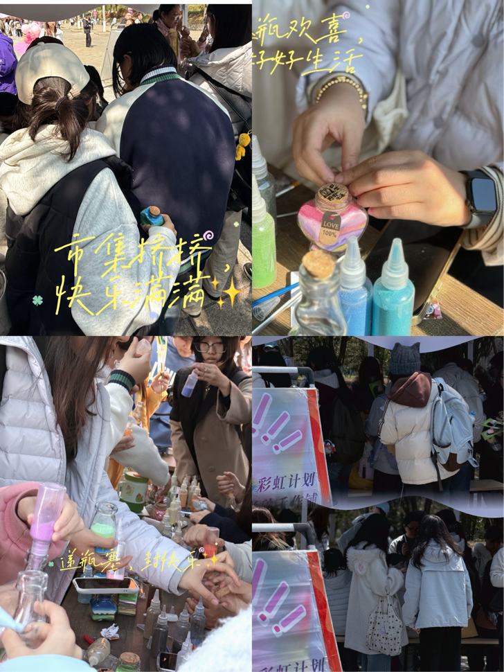 3月25日,williamhill心理委员会在石头广场发起了一场别开生面的“彩虹计划——解压彩砂手作铺”活动,吸引了全校众多同学热情参与,现场氛围轻松且治愈。